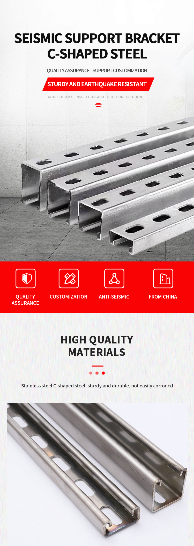 What's more, the thin wall of C-shaped steel contributes to excellent cross-sectional performance and high strength, ensuring its outstanding performance in bearing and coping with pressure. It is also highly flexible with various components to form a complete structural support system, making it suitable for various pipeline systems, ducts, and bridge supports.